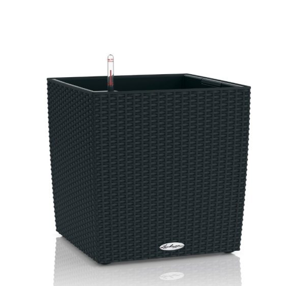 Donica Samonawadniająca LECHUZA CUBE Cottage 50 – Grafit Czarny, Efekt Technorattanu