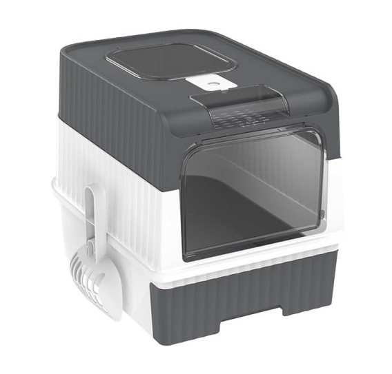 • Kuweta dla Kota POYHKFD – Zamknięta, Szufladowa, System Kontroli Zapachu + Łopatka, Szara